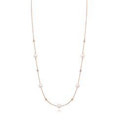 18ct Gold 6 Round Brilliant Diamonds Totalling 0.10ct With 5 X 6mm Round Akoya Pearl Necklet 16"-18".