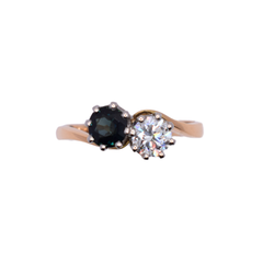 18ct Rose Gold Lab Grown Diamond And Dark Blue Sapphire Toi Et Moi Ring