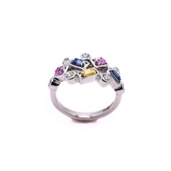 18ct White Gold Diamond Pink, Yellow And Blue Sapphire Ring
