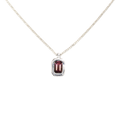 An elegant 9ct White Gold emerald cut Pink Tourmaline approx. 7x5mm in size, set in a brick style pendant design with a fixed bail.
