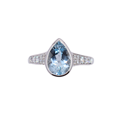 18ct White Gold Pear Aquamarine & Diamond Ring