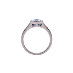 18ct White Gold 1.62ct Checkerboard Pear Shaped Aquamarine Bezel Set With Tapering Grain Set Diamond Shoulders Totaling 0.23ct In Size N and can be resized up or down by 2 sizes.
