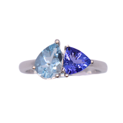 18ct White Gold Tanzanite & Aquamrine Toi Et Moi Ring