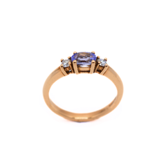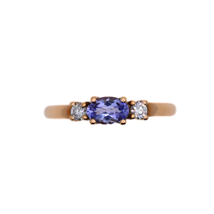 18ct Yellow Gold Oval Tanzanite And Diamond Trilogy Ring