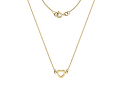 9ct Gold Open Outline Heart Pendant Fixed On A 16"-18" Curb Chain With A Bolt Ring Clasp.