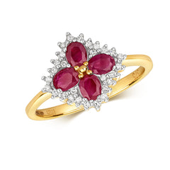 9ct Yellow Gold Diamond & Gemstone Cluster Ring - Pick Your Gemstone