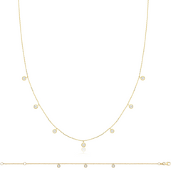 9ct Yellow Gold 17" Trace Chain With A 1" Extender With 7 Hanging Fixed Collet Set Cubic Zirconias With The Matching 7.25" Bracelet.