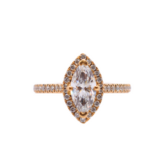 9ct Yellow Gold Marquise Halo Lab Grown Diamond Ring 1ct/D/VVS2