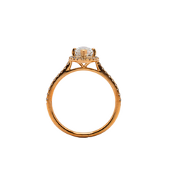 9ct Yellow Gold Laboratory Grown Diamond Ring. Four Claw Setting Carrying One Cvd Marquise Cut Diamond Certified By The Igi As 1.00ct DVVS2. The Diamond Is Set Within A Halo Design With Diamond Set Shoulders. Natural Melle Diamond Weight 0.29ct. In Size N And Can Be Resized Up Or Down By Two Sizes.