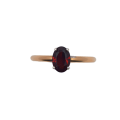 9ct Yellow Gold 7x5mm Oval Garnet Ring. Four Claw Setting Mounted Above A 2mm Rounded 'angel' Plain Band. The Ring Is Size I And Can Be Resized Up Or Down By 2 Sizes.
