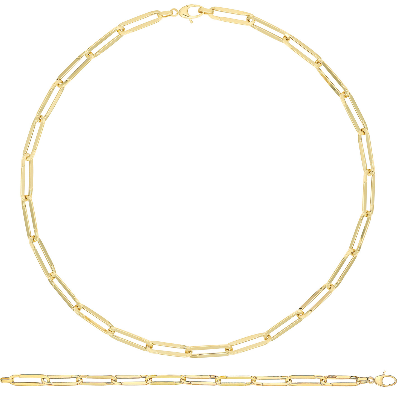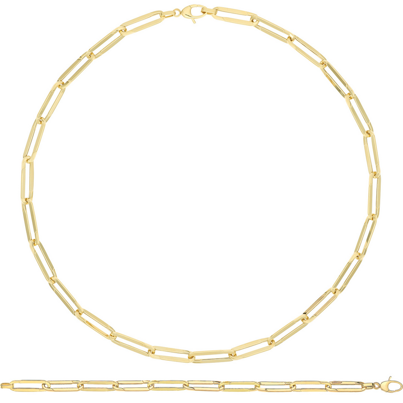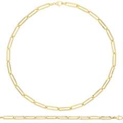 9ct Yellow Gold Hollow Paperlink 18" Necklace With The Matching Bracelet In 7.5".