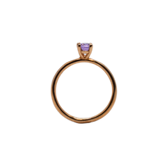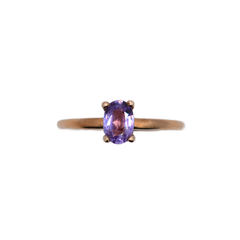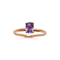 9ct Yellow Gold 6x4mm Oval Purple Coloured Sapphire Ring. Four Claw Setting On A Round 'angel' Profile Plain Shank. In Size J And Can Be Resized Up Or Down By 2 Sizes.