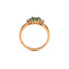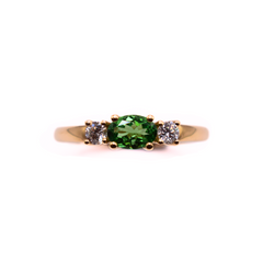 18ct Yellow Gold Oval Cut Tsavorite and Diamond Trilogy Ring