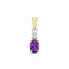 9ct Yellow Gold Four Claw Set Oval Shaped 0.40ct Amethyst Pendant With One Four Claw Set Round Brilliant Diamond Above 0.04ct On Free Moving Polished Bail Arm. Pendant Only.