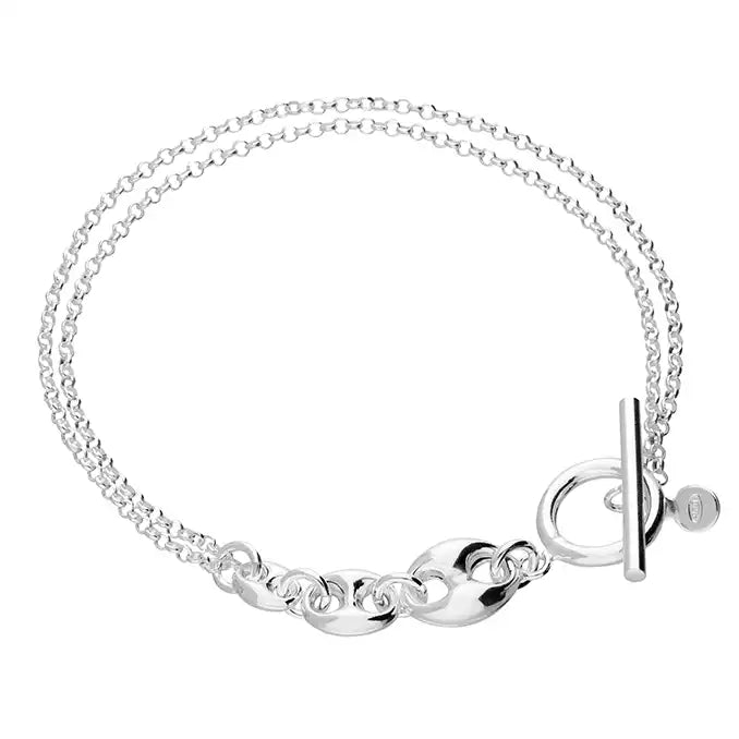 Silver Double Belcher 7.5" Bracelet With Graduate Anchor Links And T-bar Clasp.