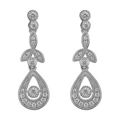 Silver Art Deco Style Cubic Zirconia Set Open Teardrop Dropper Earring With Beaded Edge Finish Throughout And Butterfly Backs.