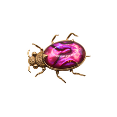 9ct Yellow Gold Beetle Brooch With Pink Synthetic Gemstone.