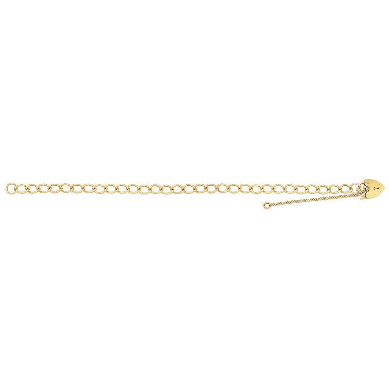 9ct Yellow Gold 7.5" Charm Bracelet With Safety Chain Attached And Heart Shaped Lock Fastener Available In Different Chain Widths .
