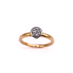 A beautiful collette set courted profile band in 18ct yellow gold with a platinum head, set with a stunning round brilliant laboratory grown IGI certified diamond weighing 0.60ct D colour and VVS1 clarity. This ring has been created in a size O and can be resized up or down by two sizes.