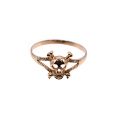 9ct Yellow Gold Skull And Cross Bone Dress Ring With Polished Finish And Open Bark Pattern Detailed Shoulders In Size W.