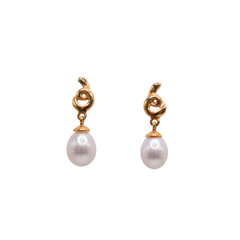 Pearl Swirl Dropper Earrings In 18ct Yellow Gold