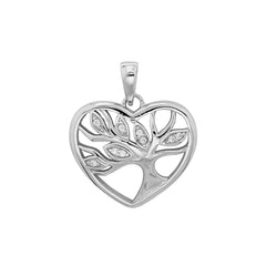 Cubic Zirconia Heart Tree Of Life Pendant In Silver