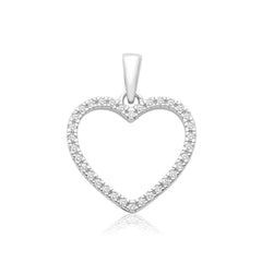 Silver Cubic Zirconia Set Open Heart Pendant On Free Moving Bail.