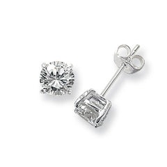 Silver Four Claw With Under Bezel Round Brilliant Cubic Zirconia Stud With Butterfly Back, avalible in 5mm, 6mm, 7mm, 8mm, 9mm.