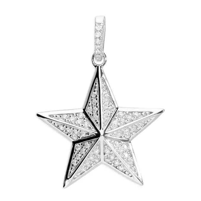 Silver Grain Set Cubic Zirconia Set Raised Large Star Pendant With Claw Set Cubic Free Moving Bail Arm.