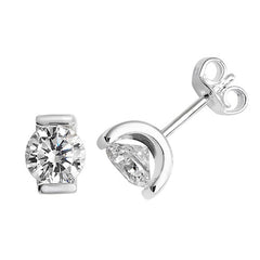 Silver Round 6mm Cubic Zirconia Stud Half Collet Tension Set With Polished Finish And Butterfly Backs.