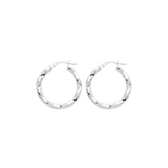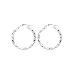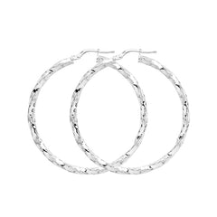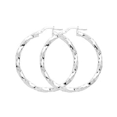 Silver Silver Tube Hoop Earrings With Diamond Cut Pattern Throughout And Click Down Fastener