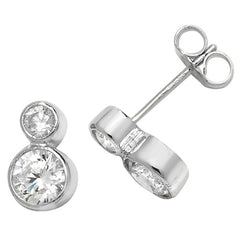 Double Cubic Zirconia Rubover Set Round Studs In Silver