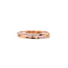 9ct Yellow Gold Cubic Zirconia Set Two Parallel Bars Ring In Size K.