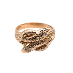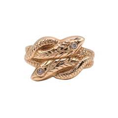 9ct Yellow Gold Large Double Headed Snake Ring With Two Round Brilliant Diamonds Bezel Set As Eyes Totalling 0.05ct G/h Colour And Si Clarity In Our Opinion In Size T.