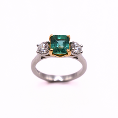 Emerald and Diamond Trilogy Ring in Platinum/18ct Yellow Gold 1.20ct
