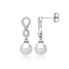 Infinity Cubic Zirconia And Pearl Dropper Studs In Silver