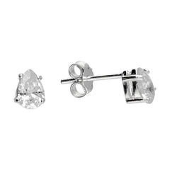 Silver Cubic Zirconia Rougly 6x4mm Pear Shaped Stud Earrings With Butterfly Backs.