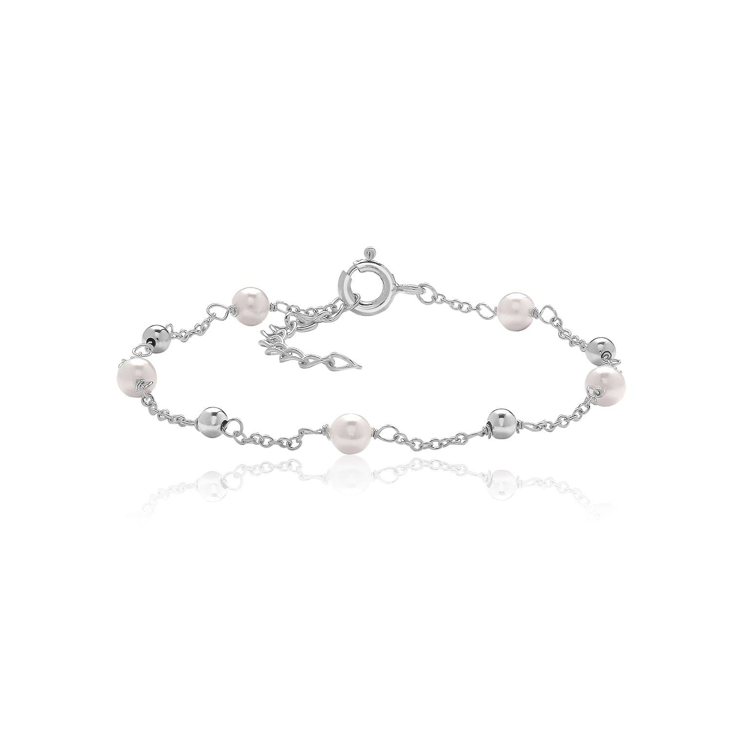 Silver 7.5" Trace Chain With Alternating Plain Silver Beads And Small Round Pearls.