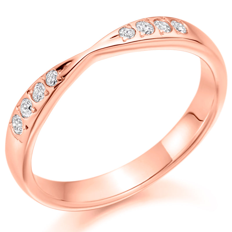 A 3.00mm Band With 4 Round Brilliant Grain Set Natural Diamond Each Side With A Pinched Twisted Centre, With 0.15ct Diamonds Total G Si Colour Clarity.