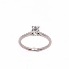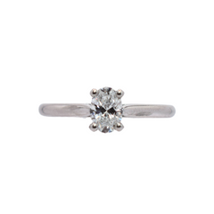 Platinum Laboratory Grown Diamond Solitaire Ring.four Claw Setting Carying One Oval Shaped Diamond, Certified By The IGI As 0.50ct DVVS1. The Mount Is Wed Fit Split And Lift Design. In Size L1/2 And Can Be Resized Up Or Down By Two Sizes.