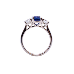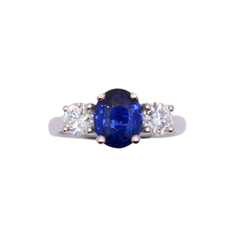 Platinum Oval Sapphire And Diamond Trilogy Ring