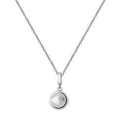Round Pearl With A Silver Rim On A 18" Trace Chain.