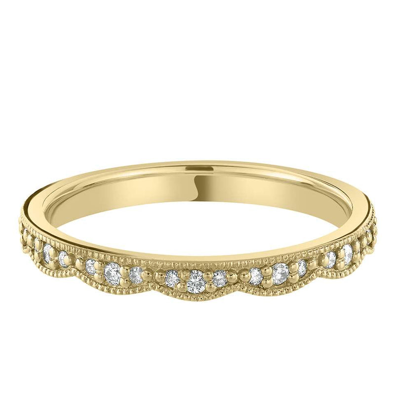 A Vintage Inspired Diamond Set Decorative Band With Scalloped Edges On One Side An Flat On The Other With Milgrain Detailing, 2.3mm In Width.