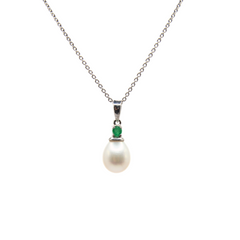 9ct White Gold Freshwater Pearl and Emerald Pendant