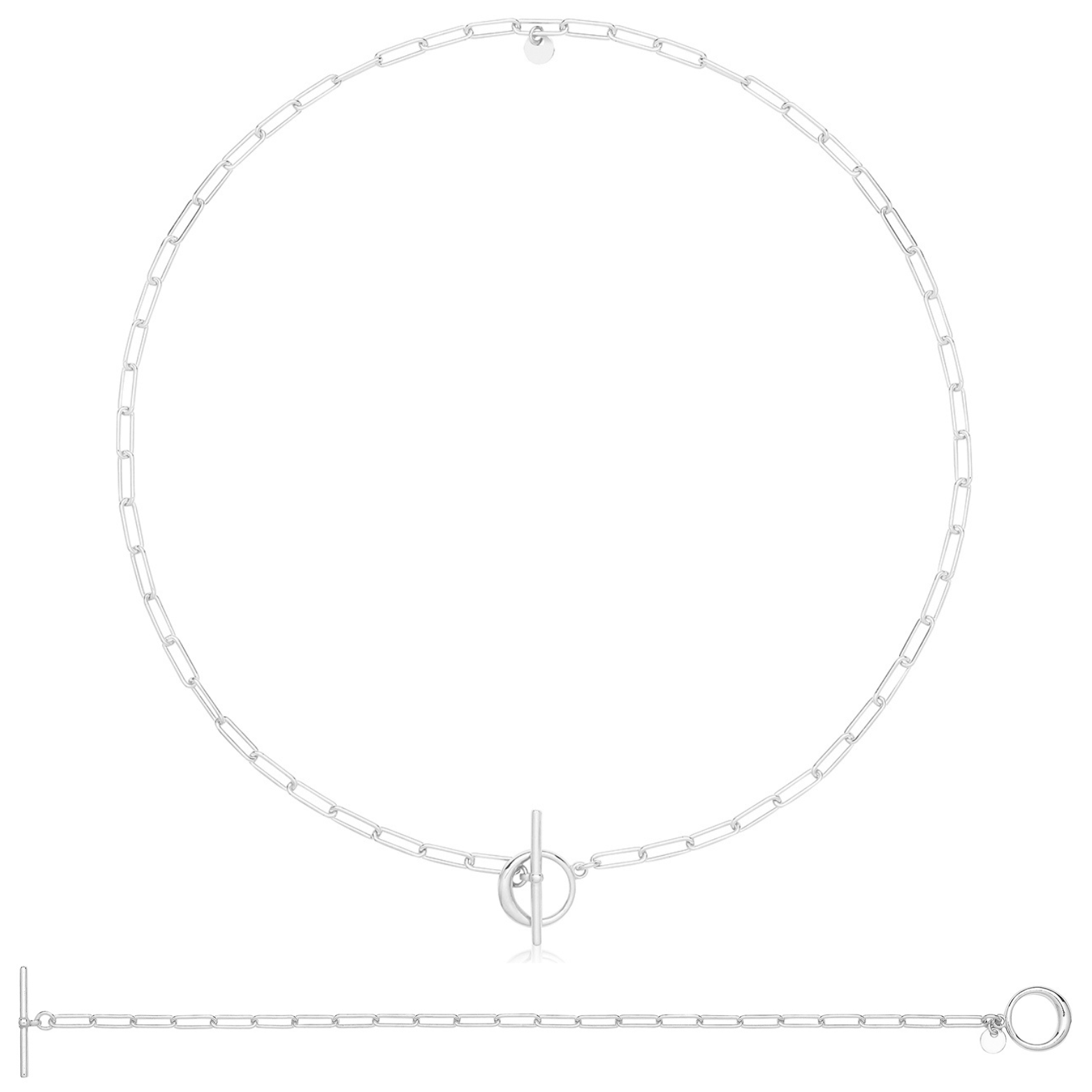 Silver PaperlinkStyle 17.5" Necklac ewith T Bar And Ring Clasp And The Matching Silver Paperlink 7.5" Bracelet With T Bar And Ring Clasp.