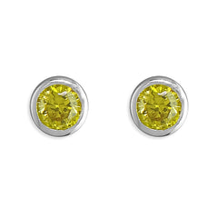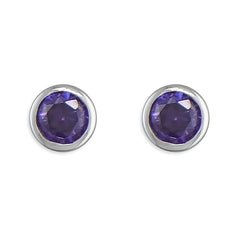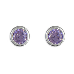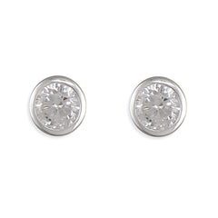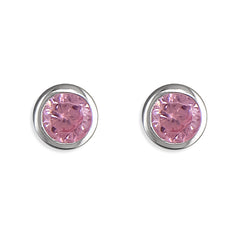 Silver Round 5mm Cubic Zirconia Gemstone Set In A Collet Style Stud Earrings.