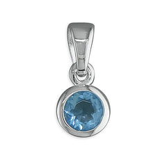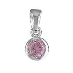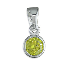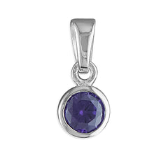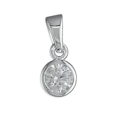 Silver Round 6mm Cubic Zirconia Gemstone Set In A Collet Style Pendant With A Free Moving Bail.