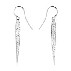 Silver Long Tapering Leaf Dropper Earring With Polished Finish And Shepards Hook Fastner.