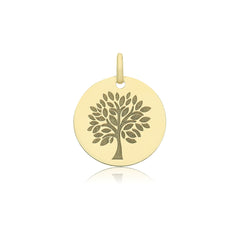 9ct Yellow Gold Disc Pendant With Tree Of Life Stamp Out And Polished Finish presented without chain.