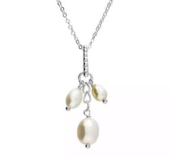 Silver 18" Chain With Three Freshwater Pearl Graduating Pendant On Bobble Detailed Jump Ring And 16" Extender.